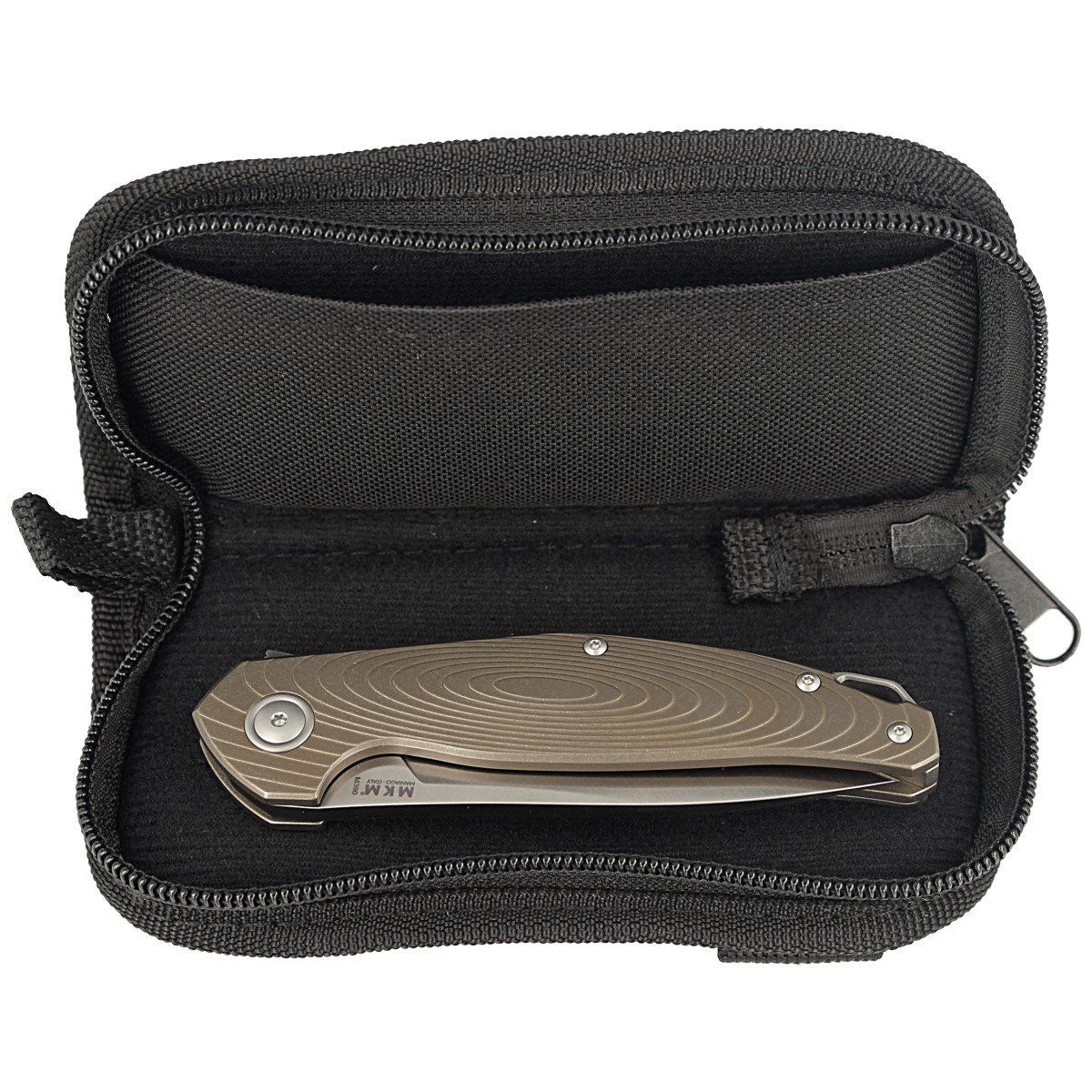 Goccia Bronze Stonewashed Titanium, Satin when Danish knifemaker and knife designer Jens Ansø showed his custom model Neo, it became the dream 'perfect knife' for many knife lovers. In cooperation with MKM, a top-quality production version of this model called Goccia was created. Goccia means "drop" in Italian and is meant to symbolize the first water-powered hammers in the forges that started the knife industry in Italy. The name is also reflected in the concentric ellipses carefully milled into the handle facings, which even mesmerize with their changing surface textures.