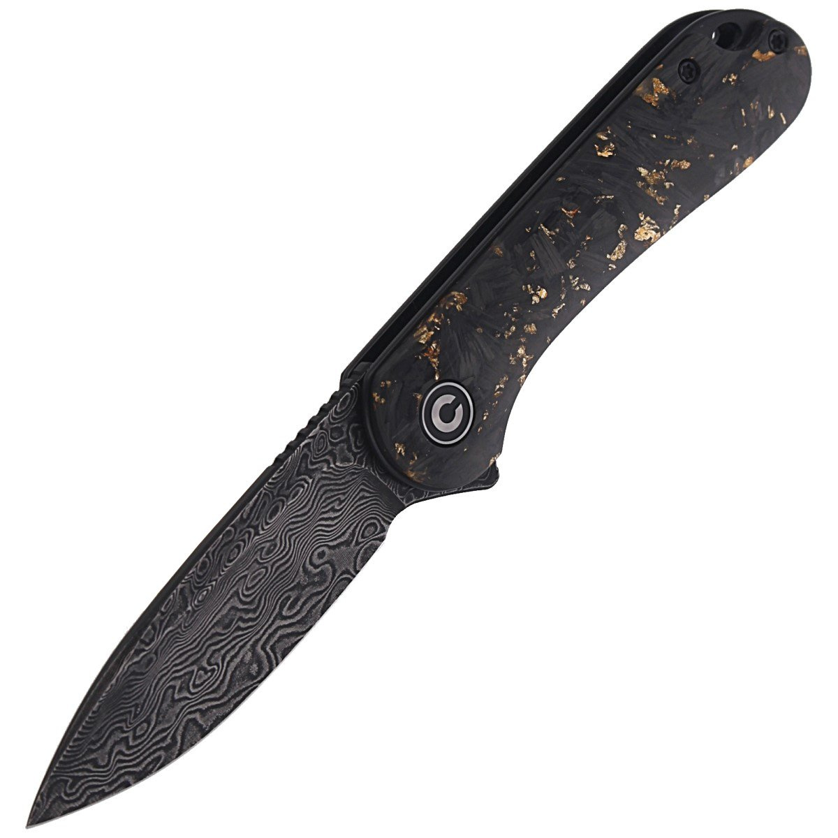 Name: Elementum Flipper Shredded Carbon Fiber / Golden Shred, Black Damascus