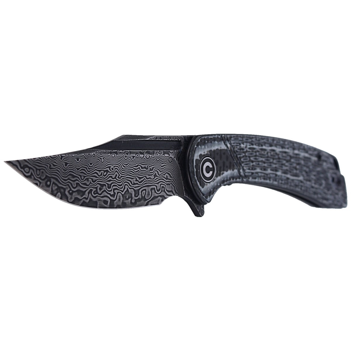 Dogma White G10/Carbon Fiber, Damascus an artful E.D.C. folder made with quality materials at a great price. White G10 and black Carbon Fiber handle. Bestseller!
