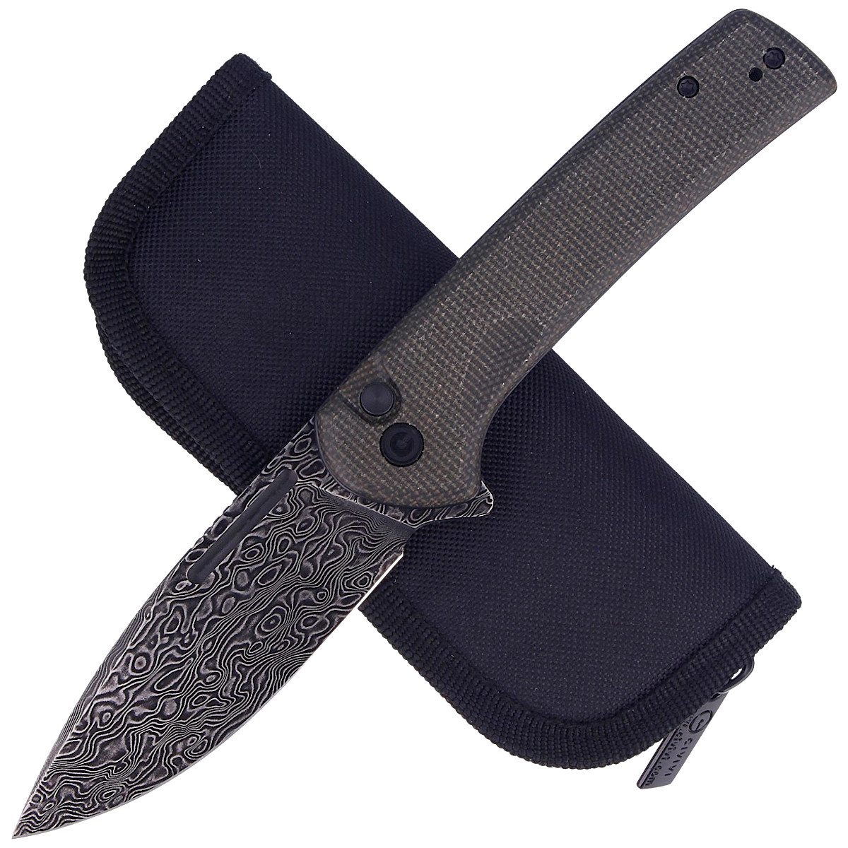 - Conspirator Dark Green Micarta, Damascus the perfect EDC knife. Drop point head of Damascus steel with a unique pattern, opens by gravity or with a quick Flipper flipper. Micarta plastic liners. Bestseller!