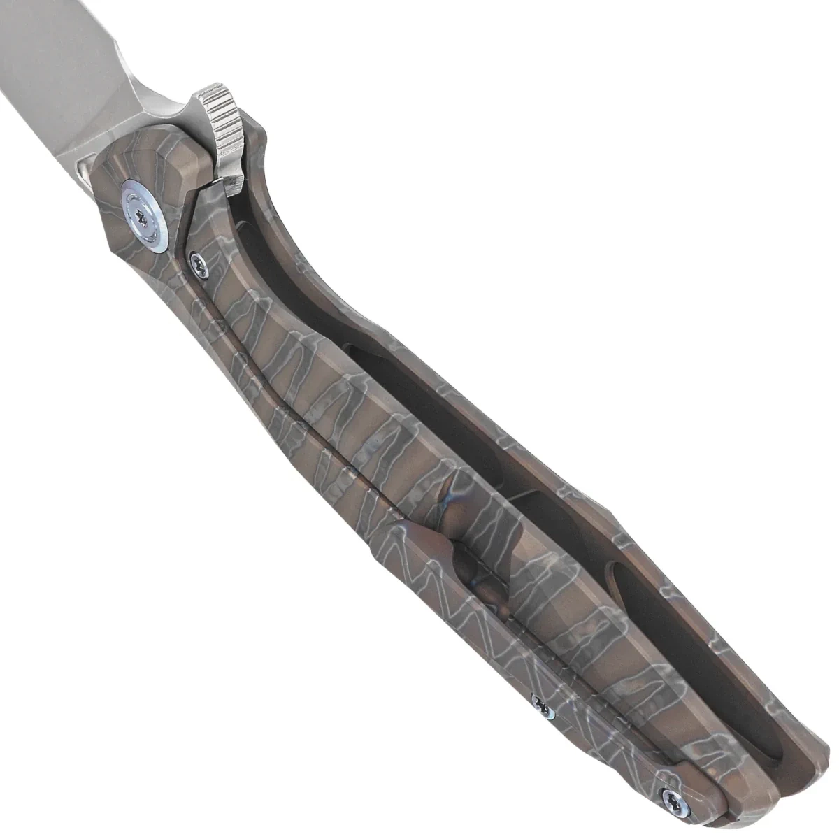 Nova Frame Lock Flamed Titanium, Beadblasted is more than just a knife—it's a compact EDC tool that seamlessly blends modern design and superior quality. Equipped with ceramic ball bearings and a titanium handle, this knife offers both durability and sophistication. Its frame lock mechanism ensures safe operation, while the premium 14C28N stainless steel blade guarantees long-lasting sharpness and reliability.