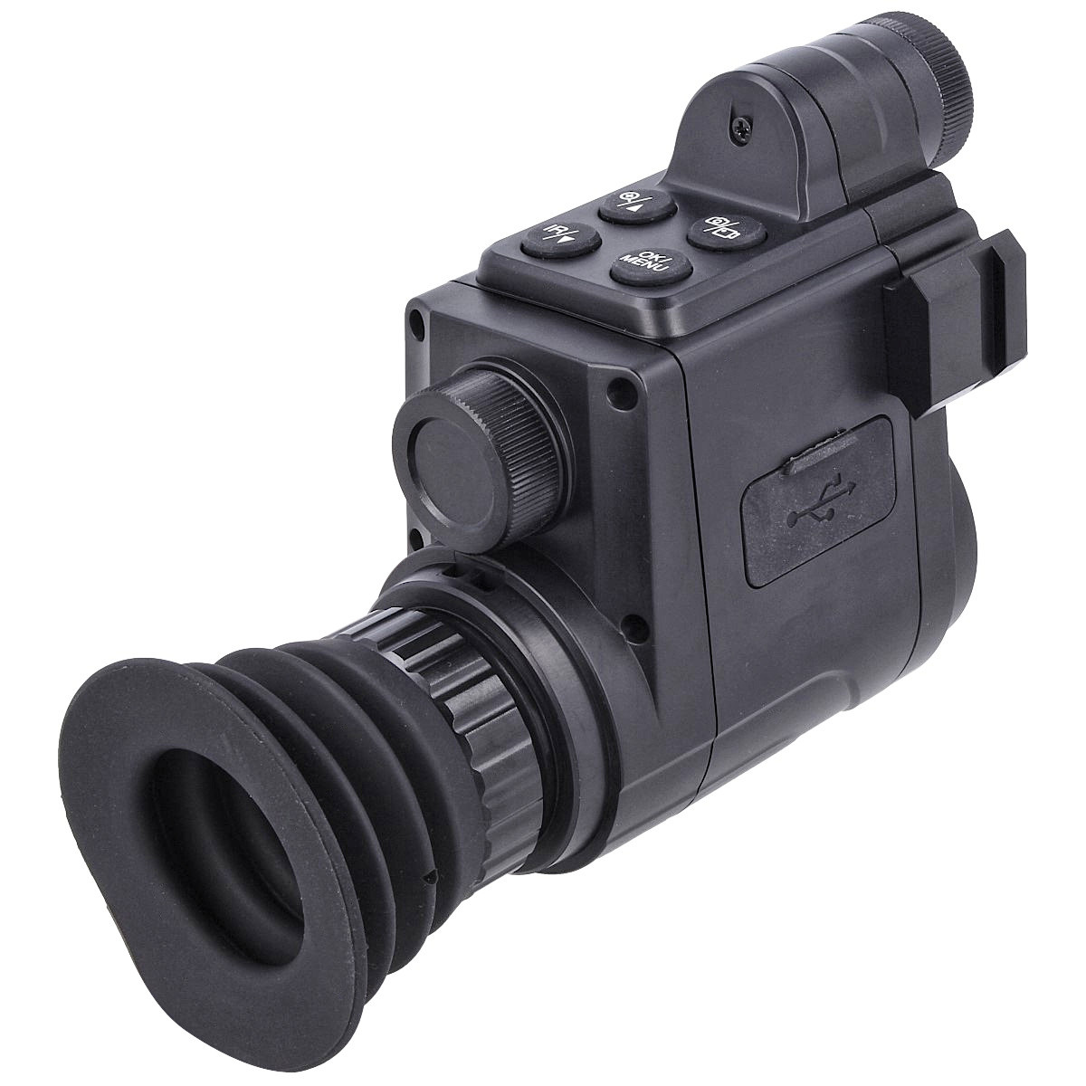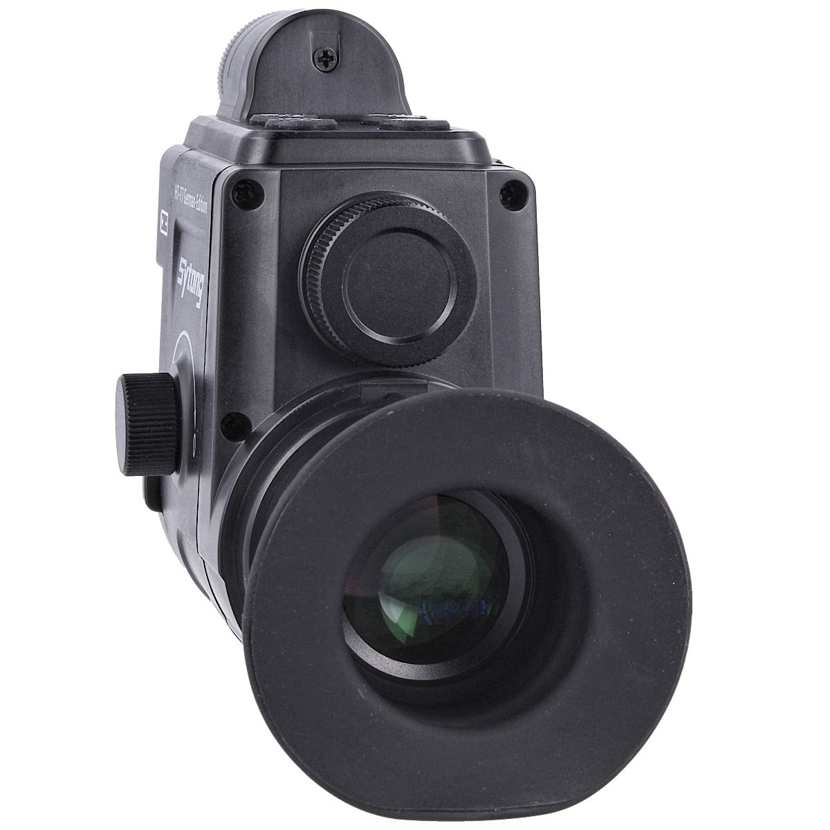 The body made of high-quality materials provides an impressive resistance to weapon recoil of up to 6000 J, so the sight can be safely used on hunting weapons with calibers 9.3 × 62 and 375 H&H. The large, comfortable focus knob is located on the right side of the unit and allows you to operate it even with thick winter gloves. In the upper part of the device there are 4 large buttons for operation, easy access and simple interface will allow us to operate the device even in total darkness. For mountain hunting lovers a built-in gyroscope will be a useful tool that provides information about the angle of inclination. By using an appropriate adapter (included in the set) we can mount our device on an optical sight (with an eyepiece of diameter up to 47 mm). The attachment is provided by Picatinny socket or thread to the tripod.