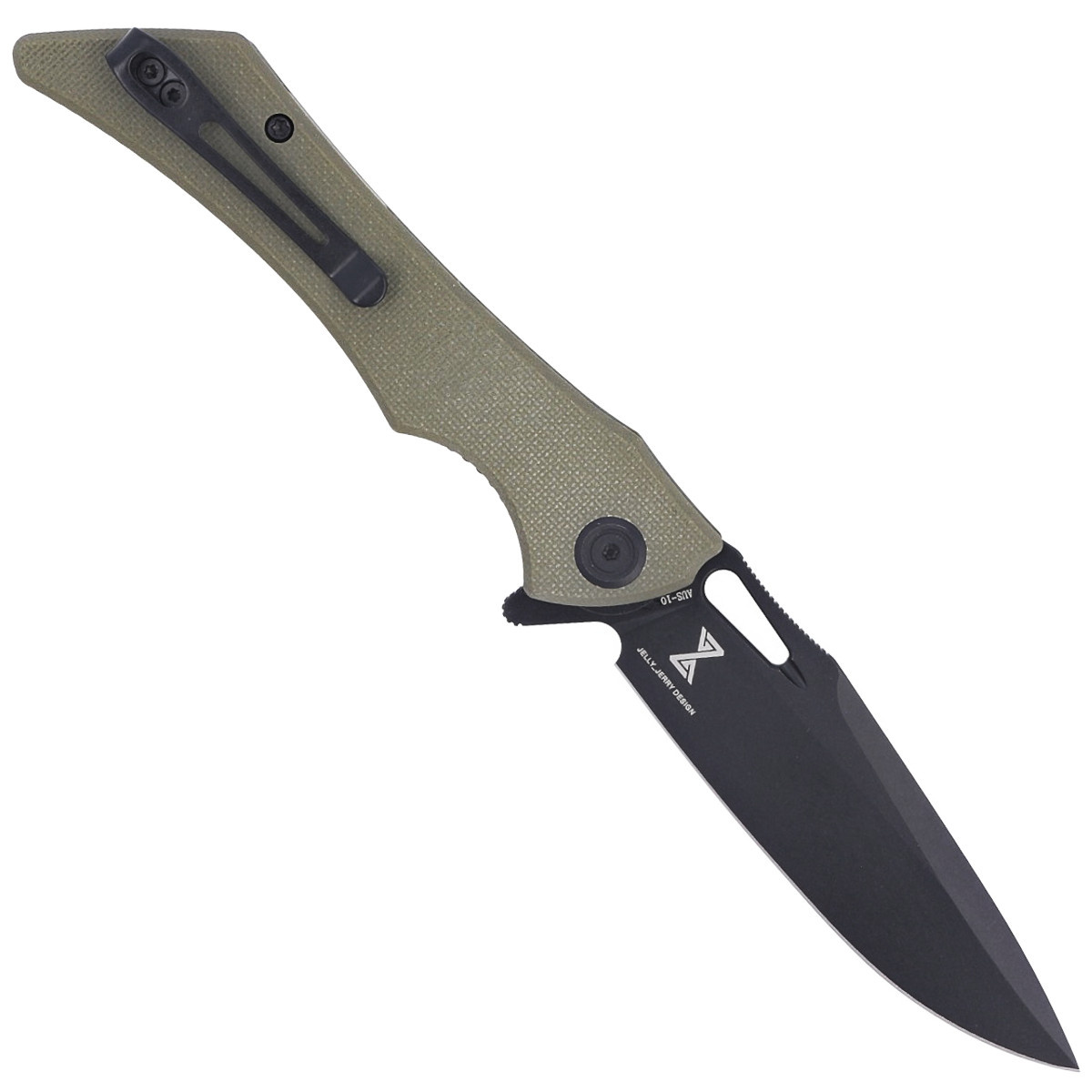 - Raven Green G10, Dark Stonewashed a large and strong knife with excellent action. Designed by Vietnamese creator Jelly Jerry. Thoughtful ergonomics of handle and profiled thumb ramp provide a secure grip during work. Excellent value for money. Bestseller!
