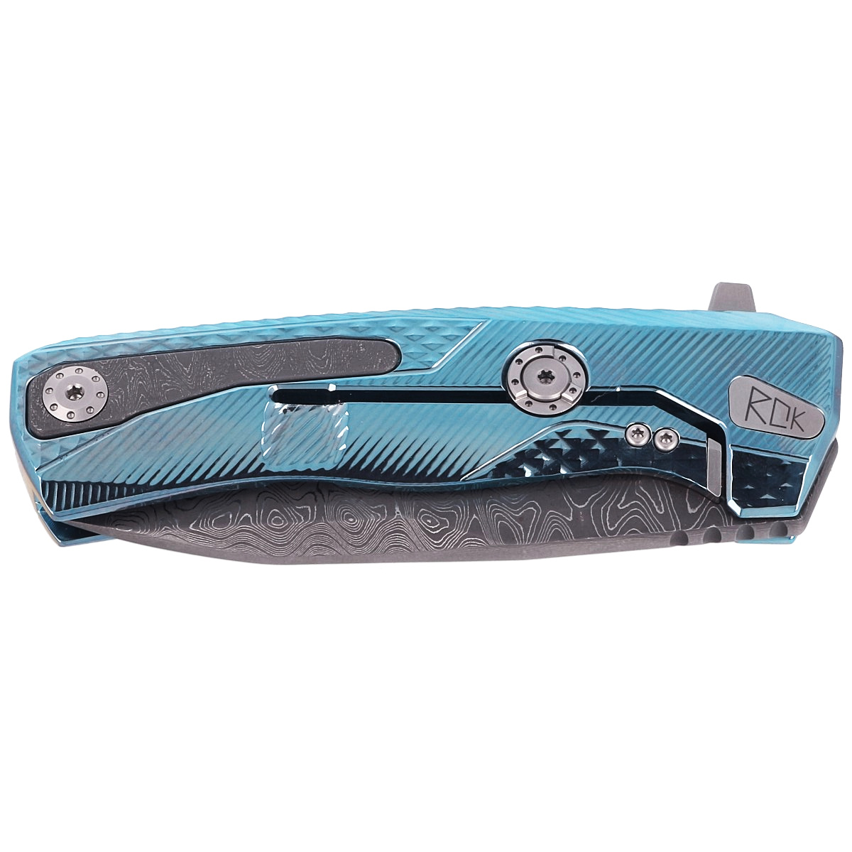 • ROK Blue Titanium knife, Chad Nichols Scrambled Damascus