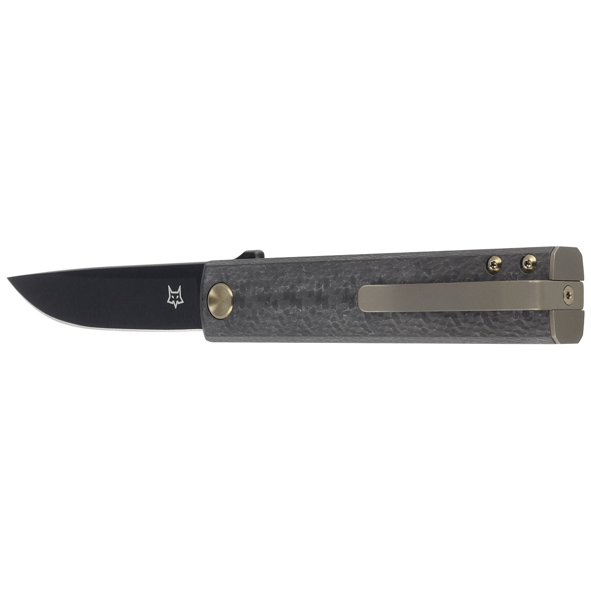 Chnops Black Carbon Fiber, Black PVD is a slim gentlemans folder knife. Beautiful carbon fiber facings, titanium clip, backspacer and screws, blade made of excellent M390 steel additionally coated with black PVD. An excellent choice for EDC! Designed for Fox Cutlery by Riccardo Gobbato, Italian designer and knifemaker.