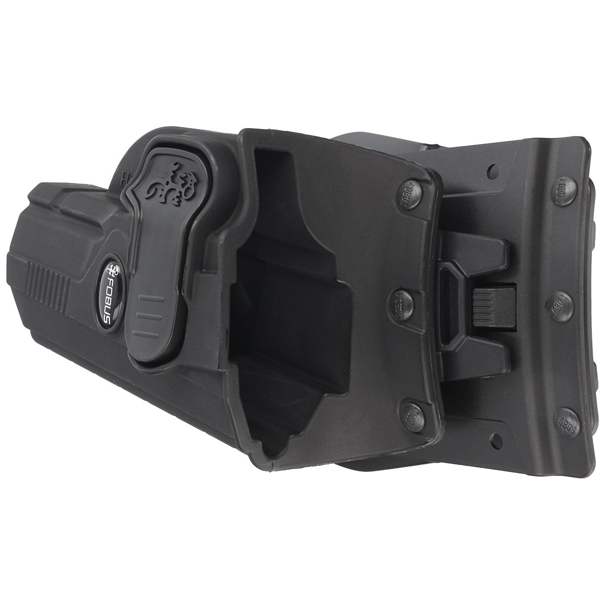 BRCH QL RP1 - Outside the Waist Band (OWB) holster from the CH series by the Israeli company Fobus, featuring a universal single rail transport platform (RP1) equipped with the QuickLock system for fast holster detachment. CH Series is a line of holsters that focuses on safety. Thanks to its low profile, the holster allows for easy concealment of the firearm, enhancing carry comfort. Made using injection molding from scratch-resistant, impact-resistant, and temperature-resistant nylon, a high-density plastic material. Right-handed version. Ideal for those seeking a reliable, comfortable, and secure holster for everyday carry.