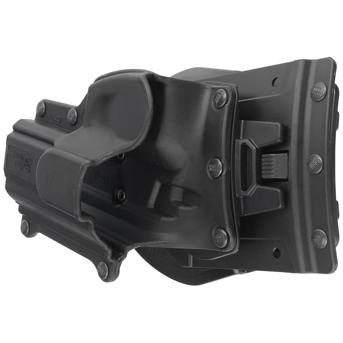 - 75D QL RP1 Fobus OWB holster, right with single rail platform (RP1) equipped with QuickLock system for quick release of the holster. For pistols Ceska Zbrojovka CZ 75D, CZ SP 01. Canik 55 TP9/Tri-Star. Sarsilmaz Defence Full Size & Compact, Mossberg MC2C.