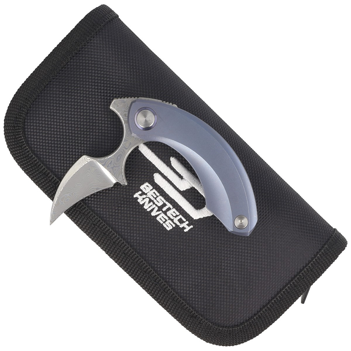 Strelit Blue Titanium, Damascus extraordinary push dagger folder for discerning buyers, the result of cooperation between Polish designer Ostap Hel and Bestech Knives company. Ergonomic handle, extraordinary blade steel!!!