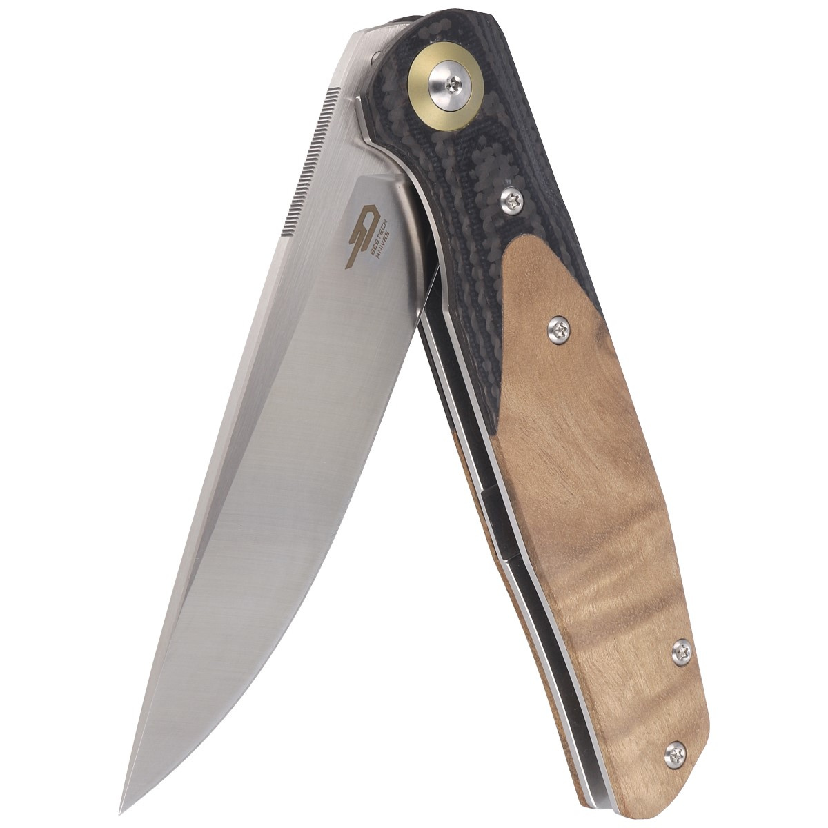 Bestech Ascot Black Carbon Fiber/G10 Lightburl Wood, Satin 14C28N Knife (BG19D)