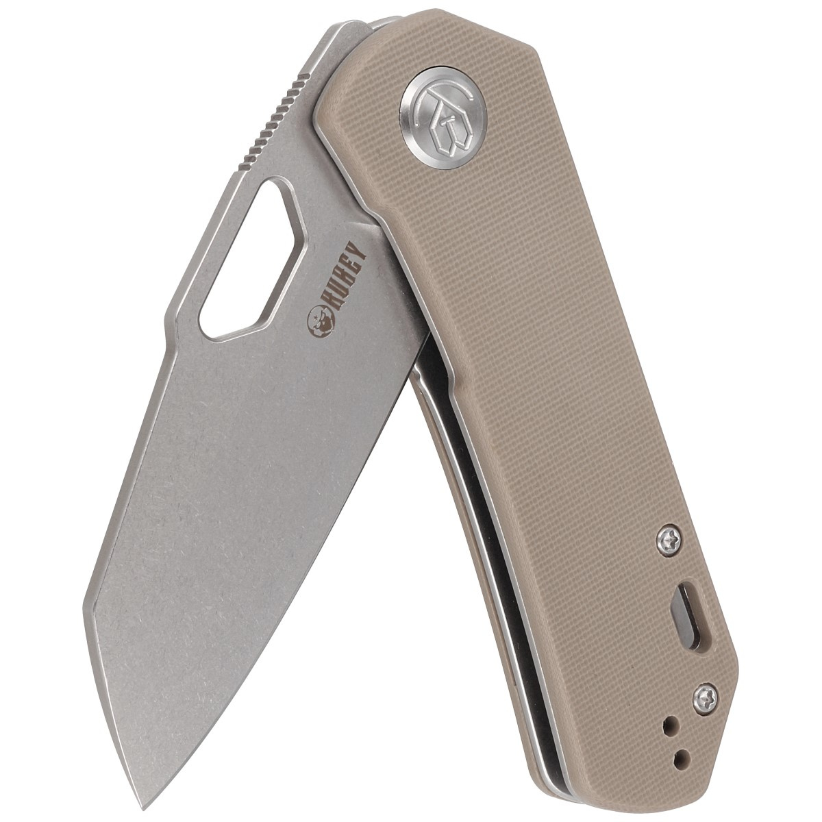 Duroc Tan G10, Bead Blasted, a handy EDC knife with an intriguing design. Utility sheepfoot blade made of AUS-10 stainless steel, blade opening and flipper fin for opening, and G10 handle. Excellent value for money! Bestseller!