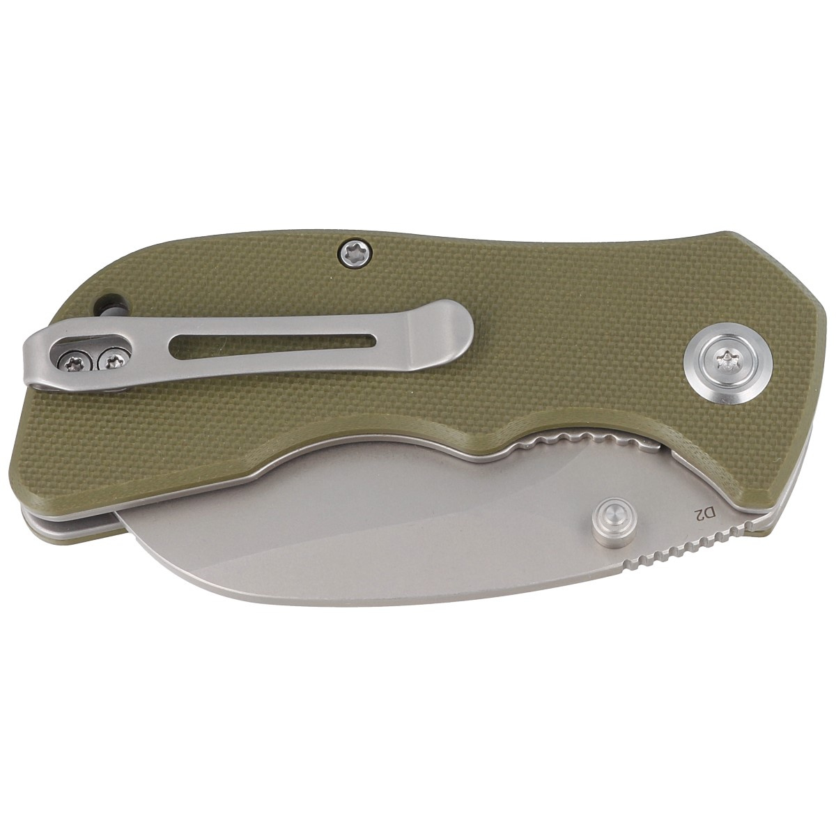 • Karaji Green G10, Bead Blasted, compact EDC folder, small in size, yet built like a tank! D2 blade tool steel, rugged G10 plastic on the Handle, a tool you can always carry with you that won't disappoint!