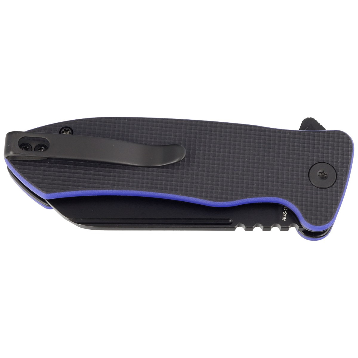 Creon Black/Blue G10, Blackwashed, compact EDC folder, combining robustness with practicality. Blade made of Japanese stainless steel AUS-10, known for its excellent corrosion resistance and ease of sharpening. The handle is made of durable G10 composite, ensuring a firm grip even in difficult conditions. The intuitive button lock mechanism allows for safe and easy one-handed operation. Thanks to its strong construction and low weight, Creon is ideal for everyday use, offering reliability and functionality in any situation.