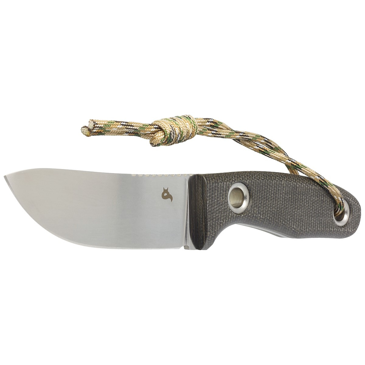 Viator Gray Micarta, Satin design by Alfredo Doricchi. Inspired by knives used by American pioneers, hunters and explorers in the 19th century, it was designed to be a compact, versatile, effective and durable knife. Full-tang, with a modified drop-point blade of D2 tool steel. Handle made of micarta, sheath made of kydex. A knife for bushcraft, survival enthusiasts.