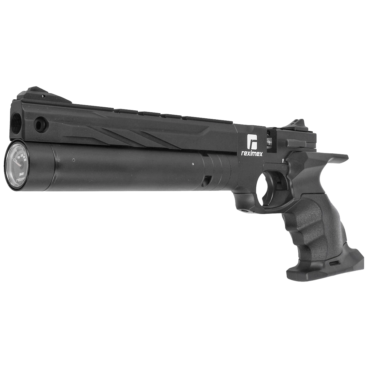 - Reximex RP Black, a PCP sporting pistol with a regulator for repeatable shots. Adjustable pin barrel and trigger tongue. Pressure vessel with a capacity of. 50cc. Anatomical handle with shelf with flask attachment option. Cal. 4.5mm, 5.5mm
