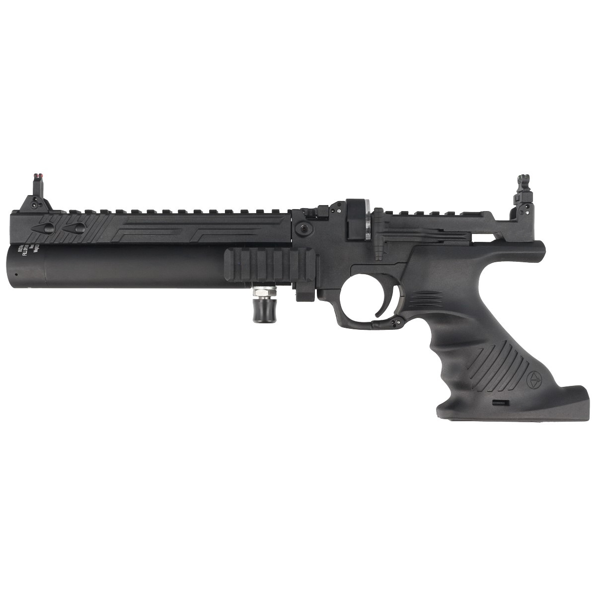 • Jet 1 4.5mm - precision PCP sports air pistol designed for target shooting and recreational use. Equipped with iron sights, a mounting rail, and a 40cc air tank and grip that allows for stock attachment. Once stock is attached, it transforms into carbine.