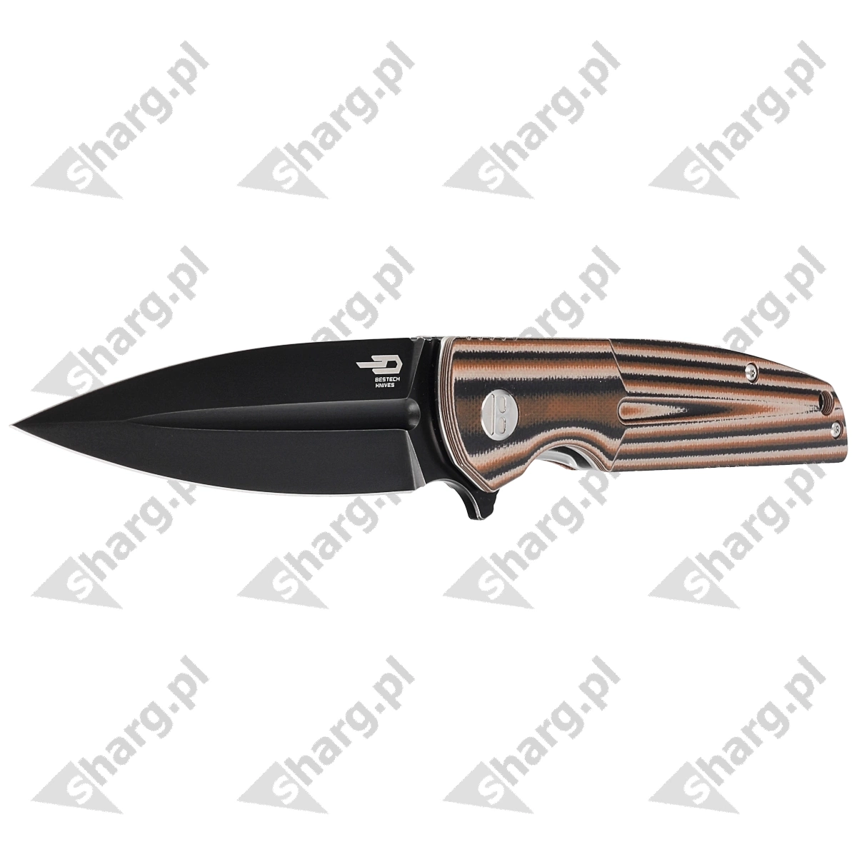 - Fin Black / Orange / Beige G10, Black Stonewashed large EDC folder with excellent value for money, aimed at demanding users. Comfortable, ergonomic handle made of virtually indestructible G10 plastic, 14C28N stainless steel blade. Bestseller!
