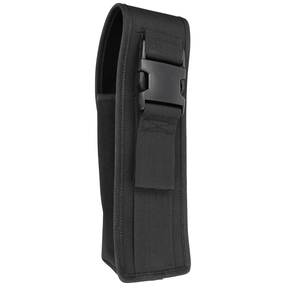 The pepper gas holster is made of waterproof nylon in black color, fastened with a Prym-type snap. Fastened with a DuraFlex-type buckle, it allows carrying in an upright position on a belt or on a mount. An additional strap allows the case to be attached to the thigh.