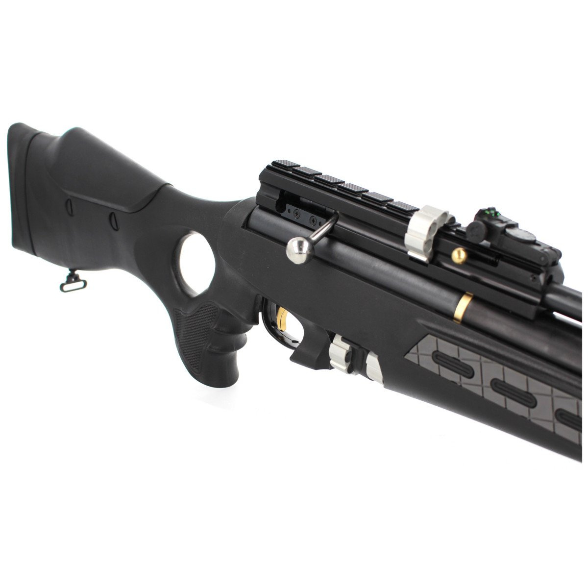 Szyna montażowa - wersja taktyczna wiatrówki z podwójną szyną montażową 11 mm / 22 mm, pozwala na montaż dowolnego celownika optycznego. Szyna zgodna ze standardem MIL-STD 1913 (zwana picatinny lub Weaver). Dodatkowe trzy szyny zgodne ze standardem picatinny na chwycie osady.