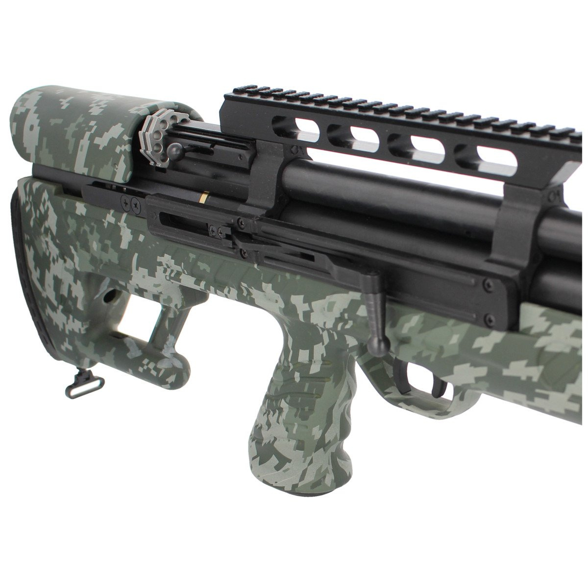 BullBoss M2 Camo, powerful windcheater PCP type bullpup companies Hatsan Arms with a sedan covered in military camouflage M2 Camo. Excellent ratio price to quality and equipment. Recommended for lovers of shooting and all kinds of modifications. Davailable in calibers: .177 (4.5 mm), .22 (5.5 mm), .25 (6.35 mm).