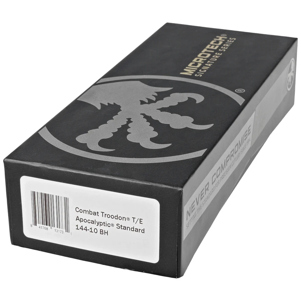 Combat Troodon OTF Line - Troodon means "wounding tooth" in Greek. Although the name was first given to a dinosaur-like Raptor, the name is equally appropriate for Microtech's large OTF knife, designed for all sorts of uses and close combat. The over-the-top, double-action (D/A) automatic knife is a favorite OTF among law enforcement officers, US armed forces and emergency services personnel. Its rugged construction makes the Combat Troodon® suitable for heavy use, and the advantages of the Out The Front automatic also make it an excellent knife for everyday carry.