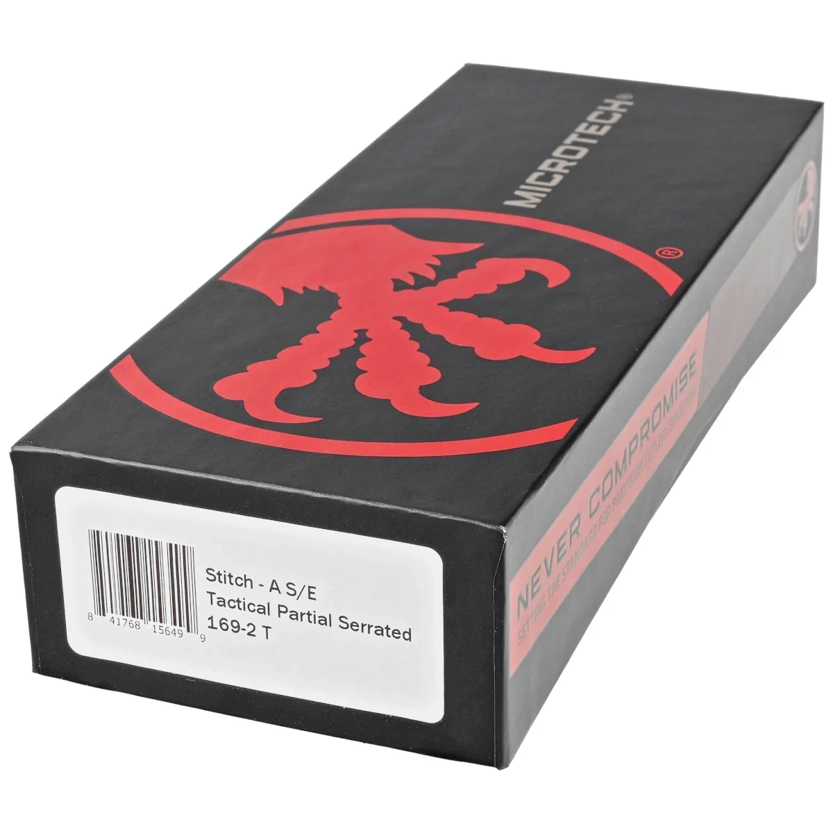 • Stitch-A S/E Black Aluminum, Black P/S large automatic knife, the result of a collaboration between Sebastijan Berenjie of Borka Blades and Microtech. Wide harpoon-shaped blade, excellent materials and legendary workmanship from Microtech Knives.