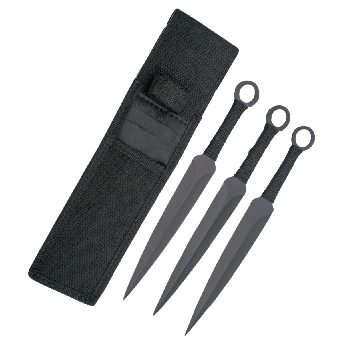 - Used for throwing, Kunai knives were once the weapons of Japanese warriors and young martial arts students. Finished with a ring, the handy handle has a cord wrap nylon sheath and a slender blade with an edge coming down to the tip. Set of 3 pcs.