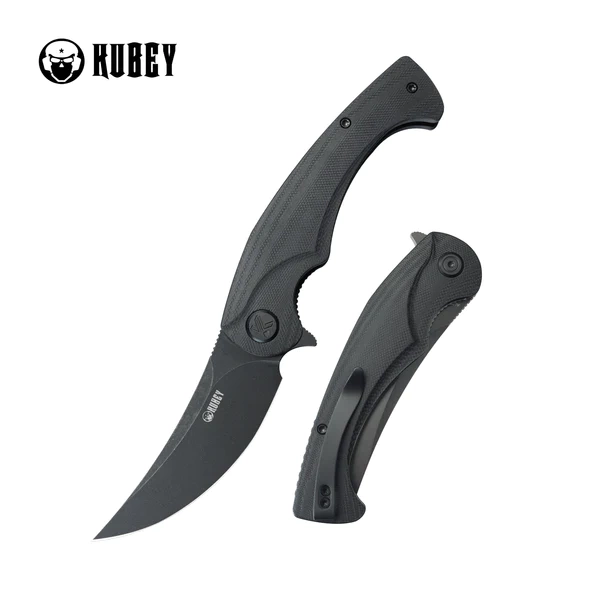 - Scimitar Black G10, Black Stonewashed expressive folder with distinctive Blade, Handle made of modern G10 composite. An ideal knife for heavy use. Kubey legendary durability and functionality of tools that serve for years. Bestseller