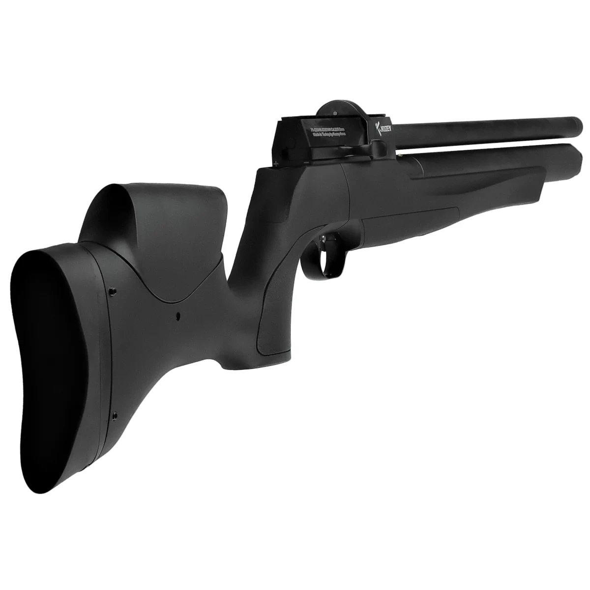 Kuzey is a Turkish manufacturer of high-quality PCP air rifles. All rifles from this brand come standard with a barrel-integrated suppressor, a power adjustment regulator, and an adjustable trigger mechanism. The Kuzey K600S is an air rifle featuring a classic polymer stock, equipped with an adjustable cheek rest and a side lever action for smooth reloading. Available in calibers 4.5 mm, 5.5 mm, and 6.35 mm.