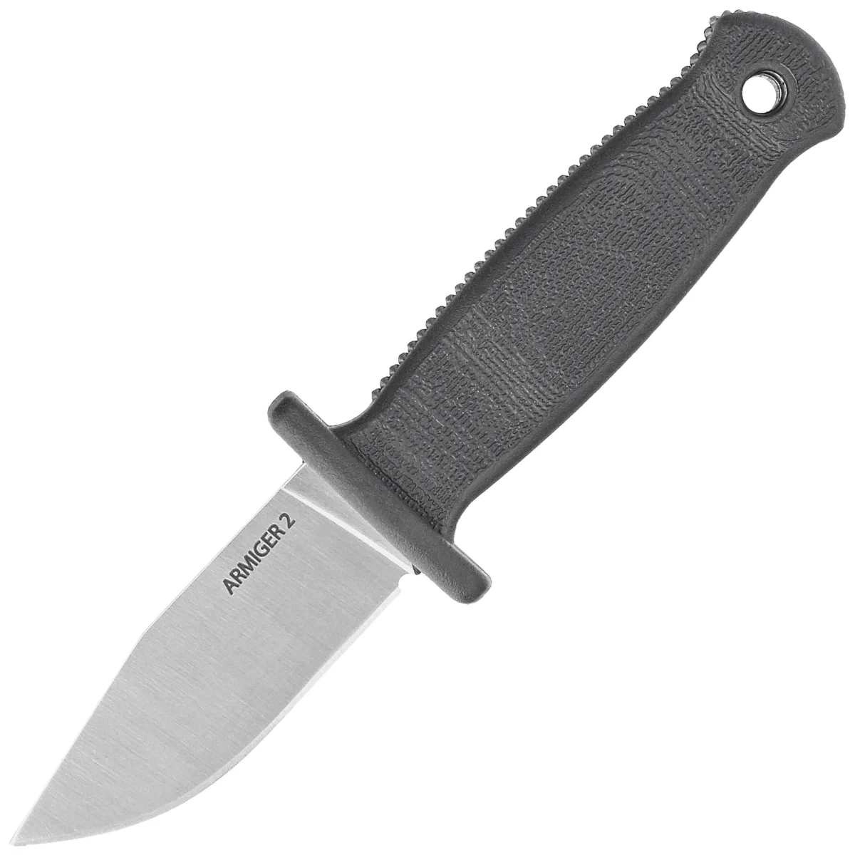 - Armiger 2 Clip Point Black Thermal Plastic Rubber, Satin, compact neck knife. Full tang construction, comfortable Handle for secure grip. Sheath made of kydex with carabiner. Designed by Cold Steel's longtime designer, Andrew Demko.