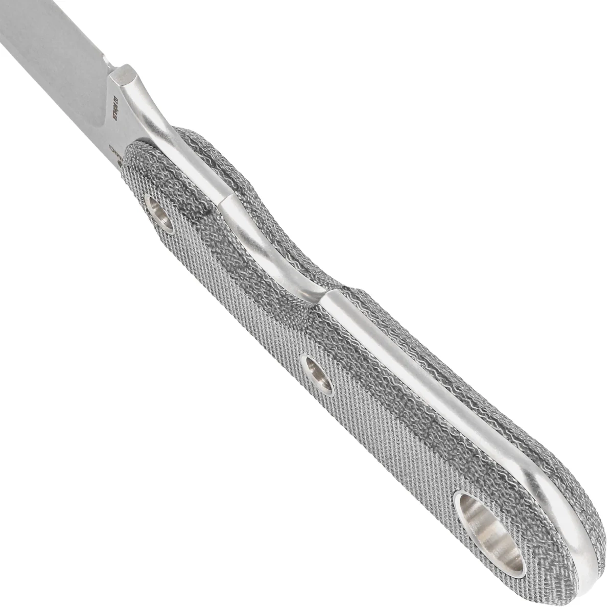Handle - made of Canvas Micarta composite (pressure-pressed canvas with synthetic resin), riveted directly to the blade, provides a virtually indestructible construction. The rounded shape of the covers eliminates sharp edges. The unique ergonomics of the Handle allows the knife to be held both ways, especially for users who appreciate an inverted grip. On the back of the Handle an enlarged lanyard hole, which is a hole for attaching a belaying line.