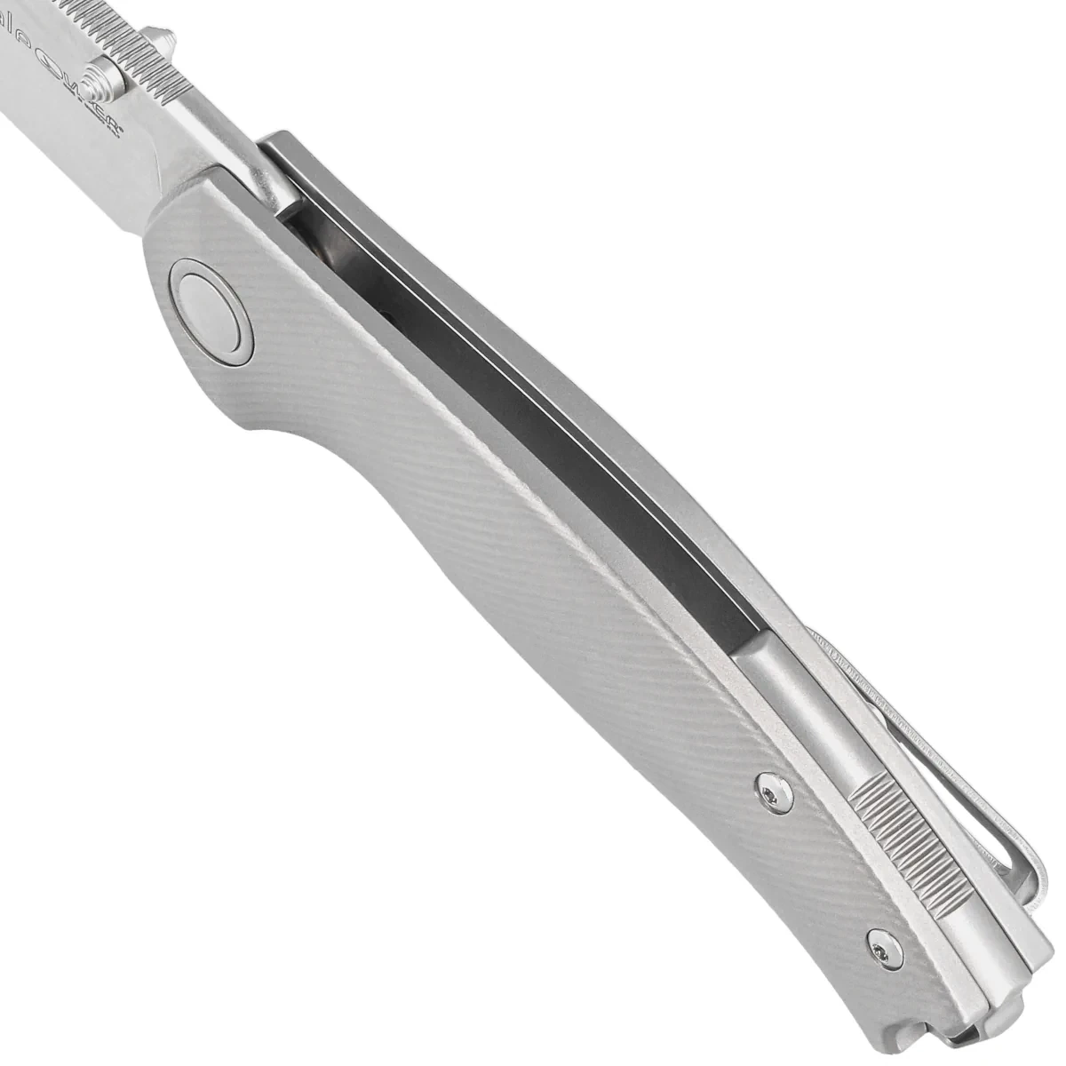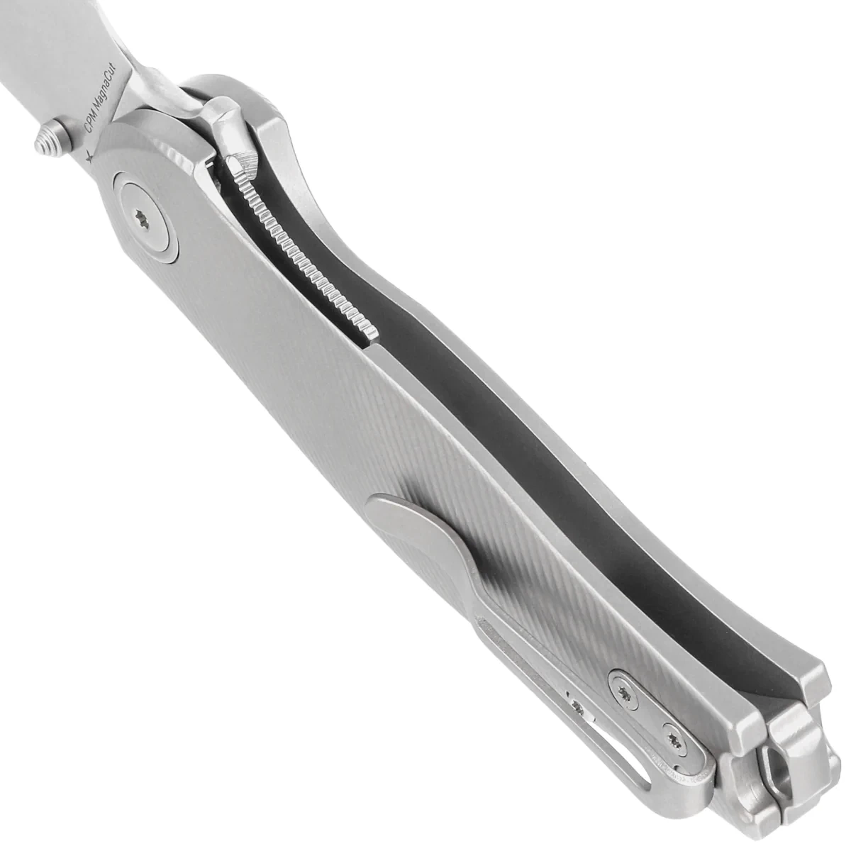 Vale Gray Titanium, Stonewashed extraordinary product, combining elegance and functionality. A knife that is the result of a combination of excellent materials and masterful design. It is the work of Jesper Voxnaes, a well-known knife designer whose works always stand out in terms of ergonomics and style. This particular model is unique in many ways. Handle grips are made of titanium, the blade, made of what is currently considered the best CPM MagnaCut knife steel, providing excellent cutting properties. The blade can be opened in two different ways. A deep clip makes it easy to carry and provides security. All this makes this knife an ideal choice for people who appreciate both style and functionality. It is not only a practical tool, but also an elegant accessory that will enhance the individual style of each user. Whether you are a knife collector or simply appreciate high quality and functionality, this knife is sure to meet your expectations.