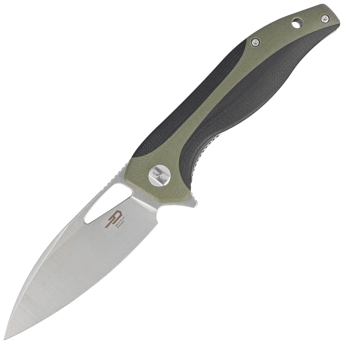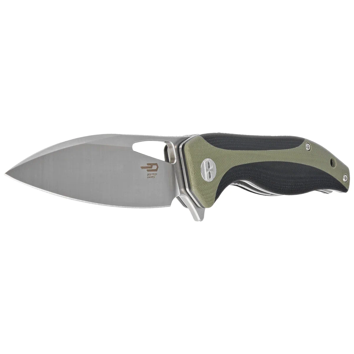- Komodo Black/Green G10, Stonewashed/Satin, a handy EDC folder with a utilitarian blade profile. Made with Bestech's characteristic care. Featuring G10 grips on the handle, Blade made of proven D2 tool steel, at an excellent price.
