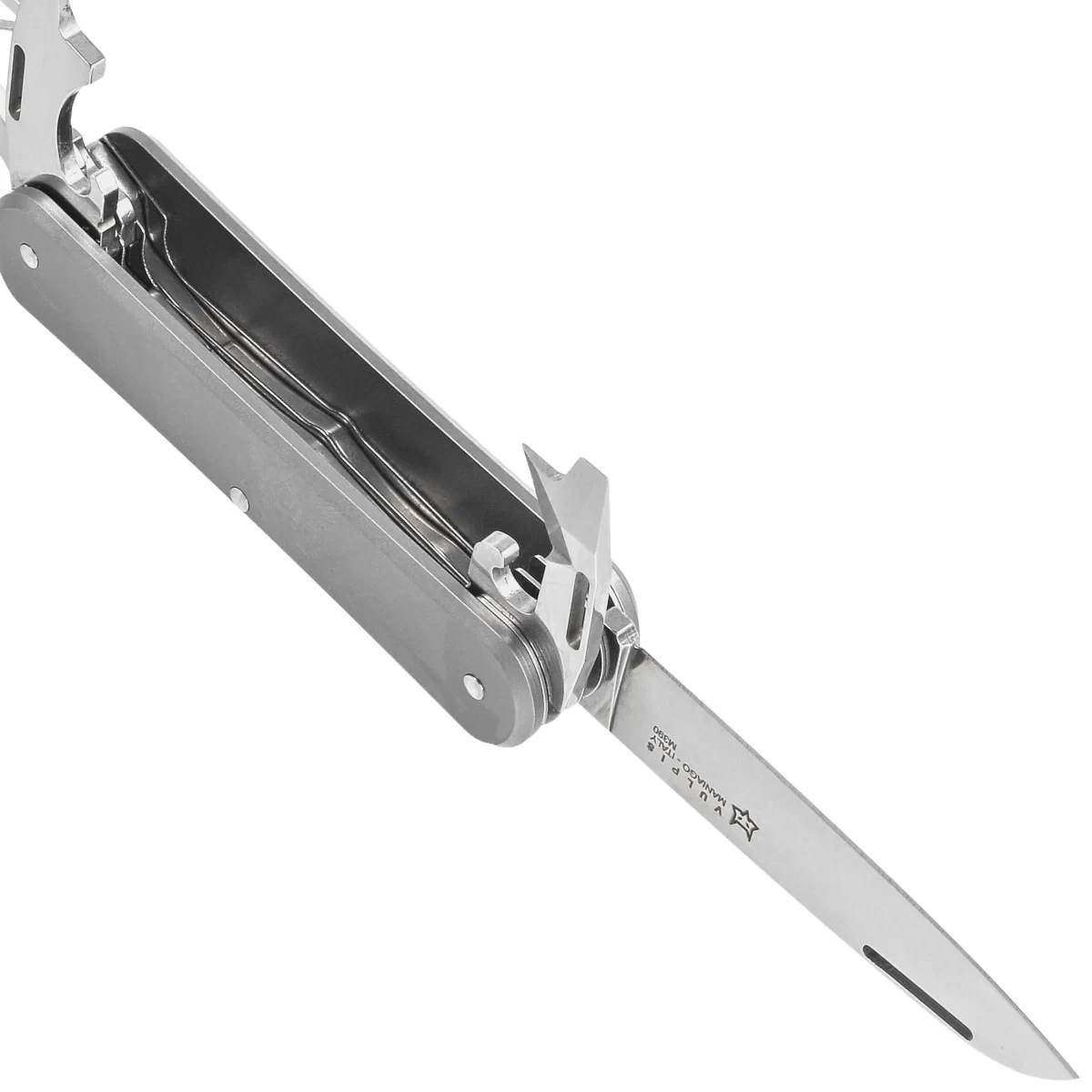 - Vulpis SF5 Sandblasted Titanium, Polished, if you're bored with Swiss design, try Italian elegance! The new Fox Knives Vulpis series wants you to not give up good steel in a new small and versatile multi-tool!