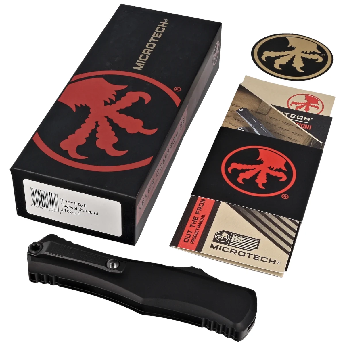 Microtech Hera II D/E OTF Knife Black Aluminum, Tactical M390MK by Tony and Sean Marfione (1702-1T)
