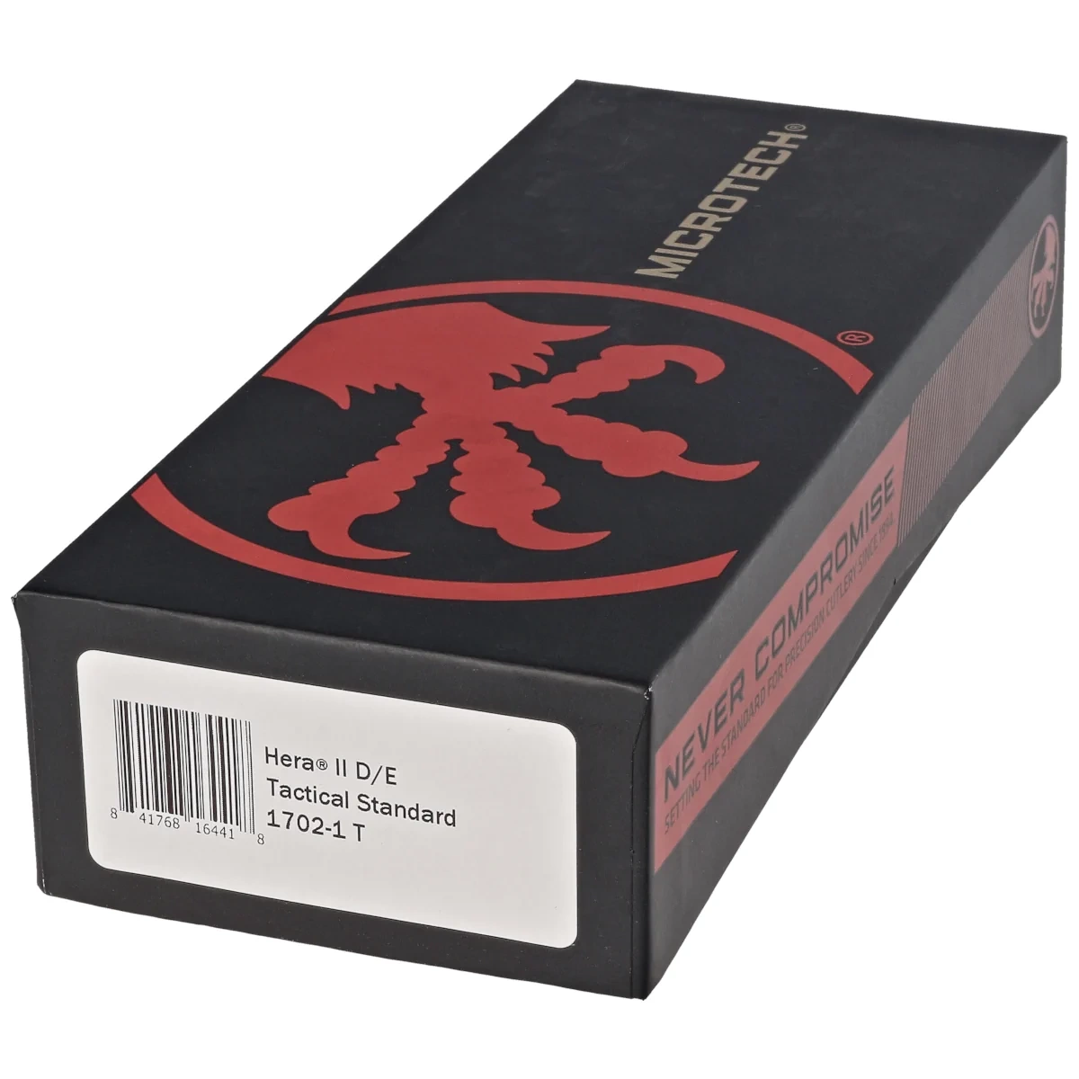 Hera II D/E Black Aluminum, Tactical one of the most versatile OTF (Out The Front) automatic knives. Inspired by the iconic Troodon, it bridges the gap between EDC models and fully tactical designs. The exceptionally durable D/A (Double Action) mechanism provides fast, powerful, and reliable blade deployment and retraction. The knife stands out with its excellent fit, finish, and overall build quality. A design by Anthony Marfione, renowned knifemaker and owner of Microtech Knives.