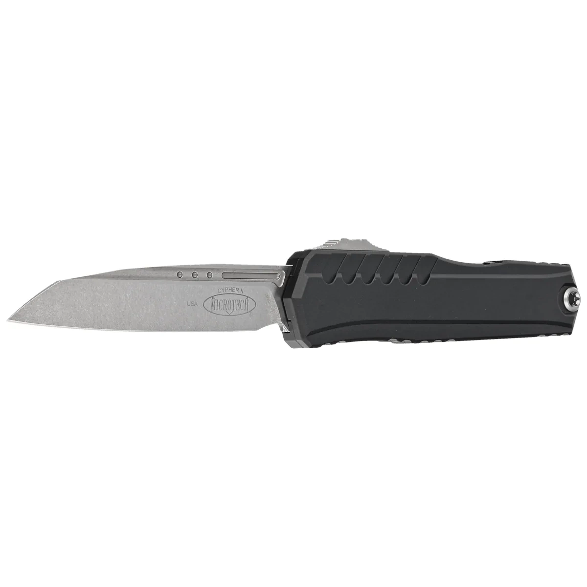 Microtech Cypher II S/E OTF Knife Black Aluminum, Stonewashed M390MK by Deryk Munroe and Tony Marfione (1241-10)