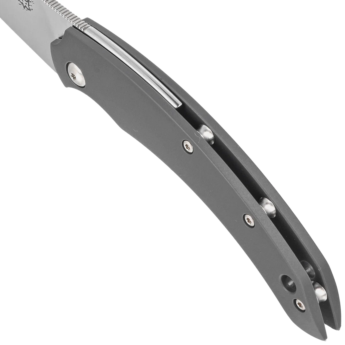 Slim Dragontac ''Piemontes'' Gray FRN, Satin is a friction folder designed by Bastien Coves of Bastinelli Creations. This remarkable tool combines simplicity of design with exceptional functionality and proven materials. The blade is made of the popular Böhler N690Co steel. Handle made of FRN (Fiberglass Reinforced Nylon), a lightweight and extremely durable composite. The Slim Dragontac "Piemontes "is not only a tool, but also an expression of artisanal precision. Every detail, every finish is carefully crafted by master craftsmen, which guarantees not only excellent quality, but also the uniqueness of each piece. Friction folder does not have a lock as such, so it is allowed in all countries where carrying locking knives is prohibited. If you are looking for an elegant, functional knife for your collection, the Slim Dragontac ''Piemontes'' is an excellent choice. Its unique design, high quality workmanship and functionality will make it an indispensable part of your equipment. It is a combination of beauty and functionality that any knife lover is sure to appreciate.