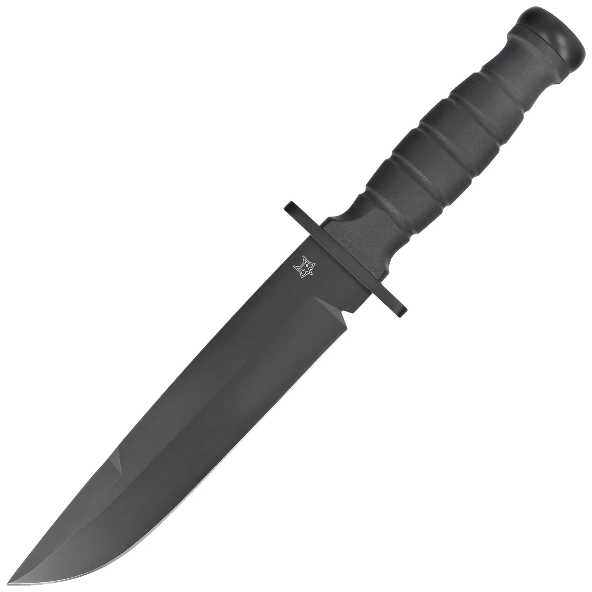 Defender Black FRN, Black Top Shield powerful Tactical Bowie knife, which was created for professional soldiers, military enthusiasts, survivalists. The blade is made of the popular Böhler N690Co steel. Handle made of FRN composite, comfortable and provides a secure grip, even in the toughest conditions. Handle structure is designed to provide maximum control over the knife, regardless of the situation. Sheath made of kydex, adapted for attachment in the M.O.L.L.E. system. This means that the knife can be carried in many different ways, adapting it to the individual needs and preferences of the user. It not only performs its basic functions, but also stands out from other knives thanks to its unique design and high-quality materials. Whether you are a professional soldier or an outdoor enthusiast, the Fox Defender is a knife you can always rely on.