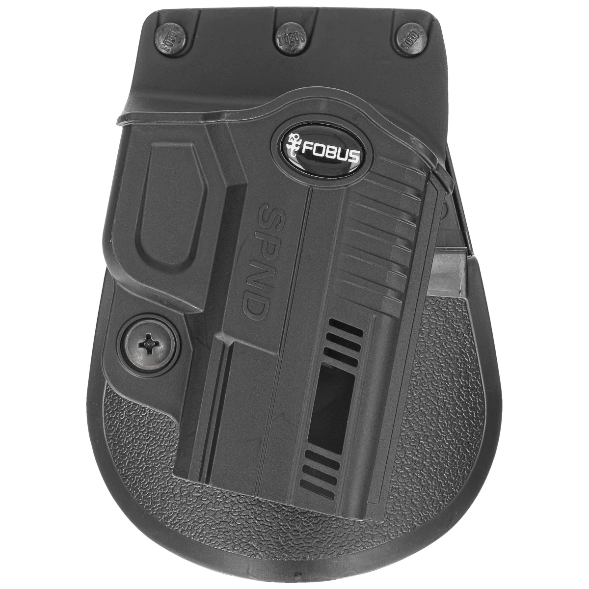 SPND RT (Rotating Paddle) - Outside the Waist Band (OWB) holster from the ND (New Design) series from Fobus. The ND series, was designed with an emphasis on functionality, lightweight construction and durability. Its low profile makes it easy to conceal the weapon, increasing carrying comfort. The holster protects well against damage and does not tend to move. Made entirely of 100% injection-molded polymer. Right-handed version.