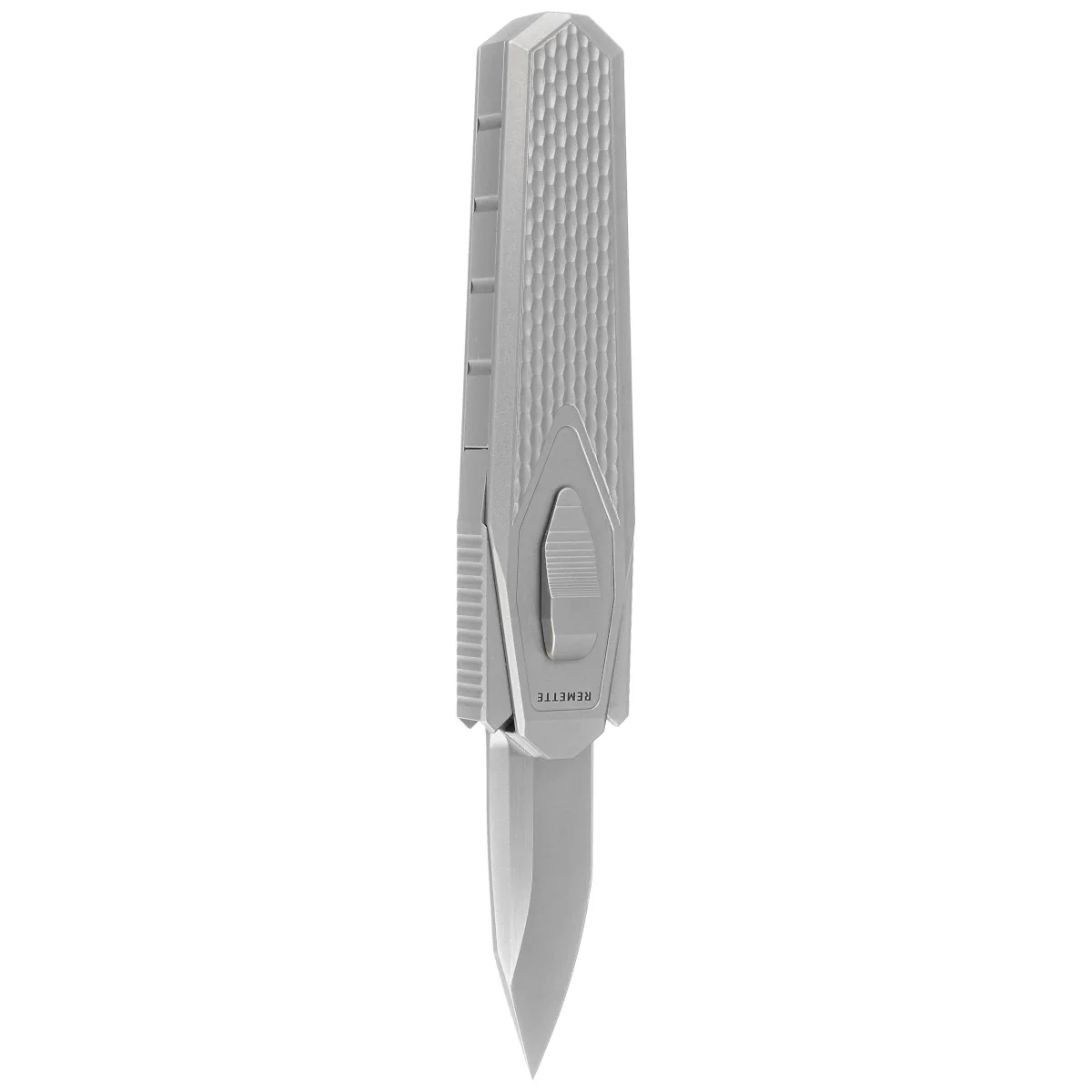 - Swordfish Titanium / Red Blu Carbon Fiber, Pearlescent. An innovative knife from the young Remette Knives manufactory. OTF with an extendable blade made of Böhler M390 steel by gravity. Handle made of titanium with an innovative blade release system.