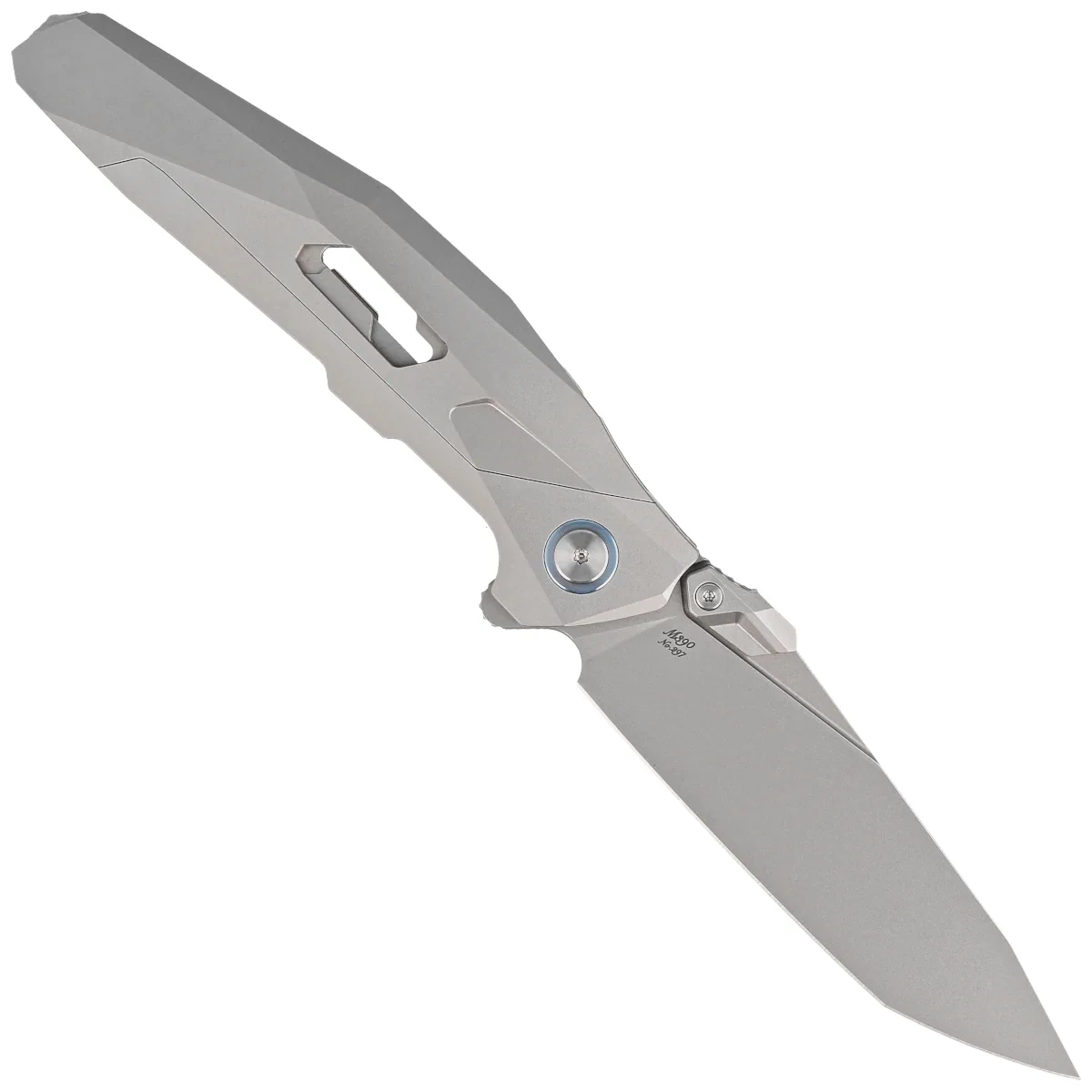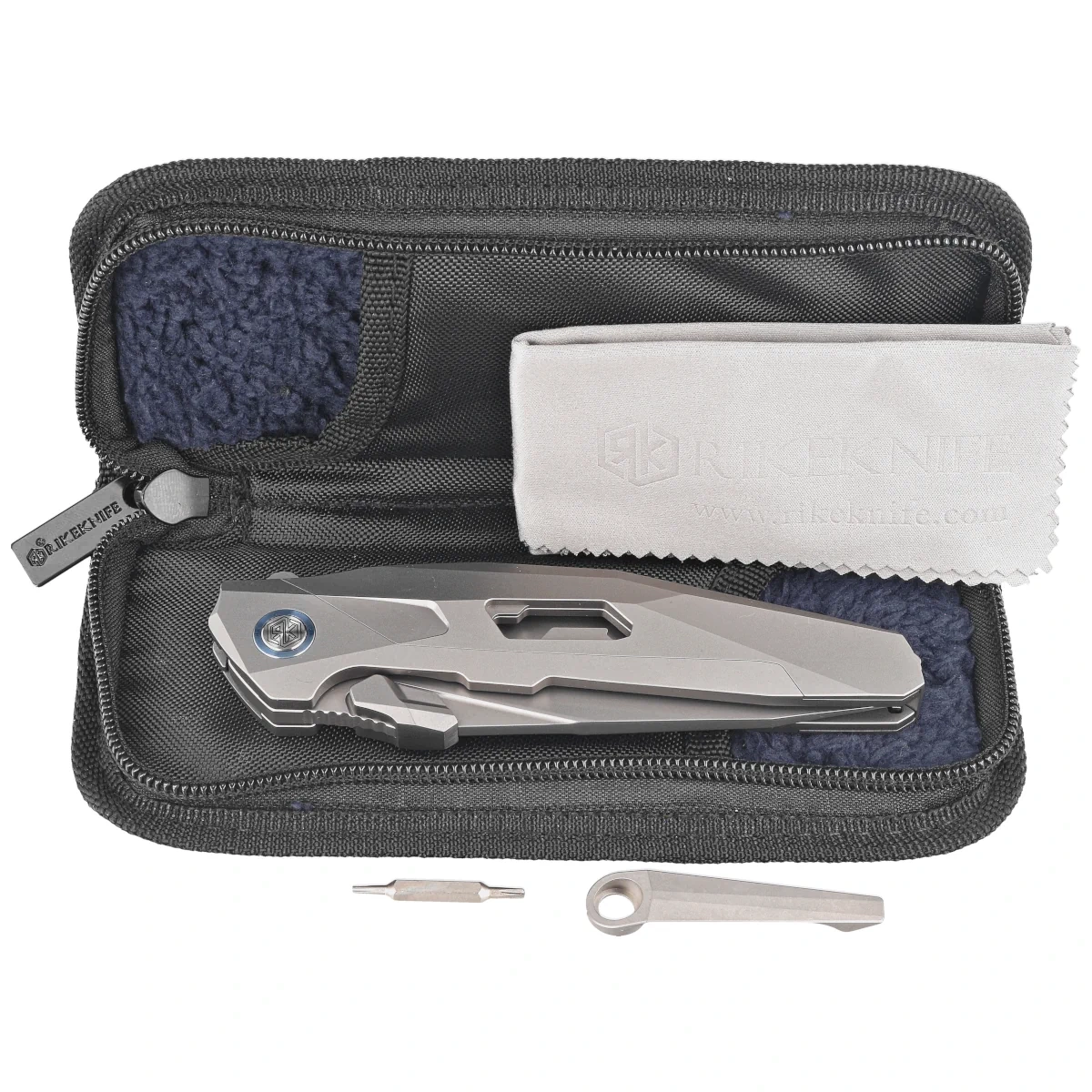 Shadow Tanto Gray Titanium, Satin, an exceptional EDC folding knife, a show-off of Rike Knives engineers in design, combines excellent functionality with unique style. Blade of tanto type is made of Böhler M390 steel, considered one of the best steels for knives. Theflipper is a quick flipper that allows you to open the knife instantly with one hand. This is especially useful in situations where every second counts. Handle is something that draws the most attention in this knife. The titanium exoskeleton on which the outer monolithic housing milled from a single piece of titanium is mounted. This provides incredible strength and rigidity in the construction. The Rike Shadow is not just a tool - it is an expression of personal style and passion. Its compact size makes it easily cope with any task, and the quality of workmanship and unique design attract attention. Do not hesitate - this knife is an excellent choice for those who appreciate quality, functionality and sophisticated design!