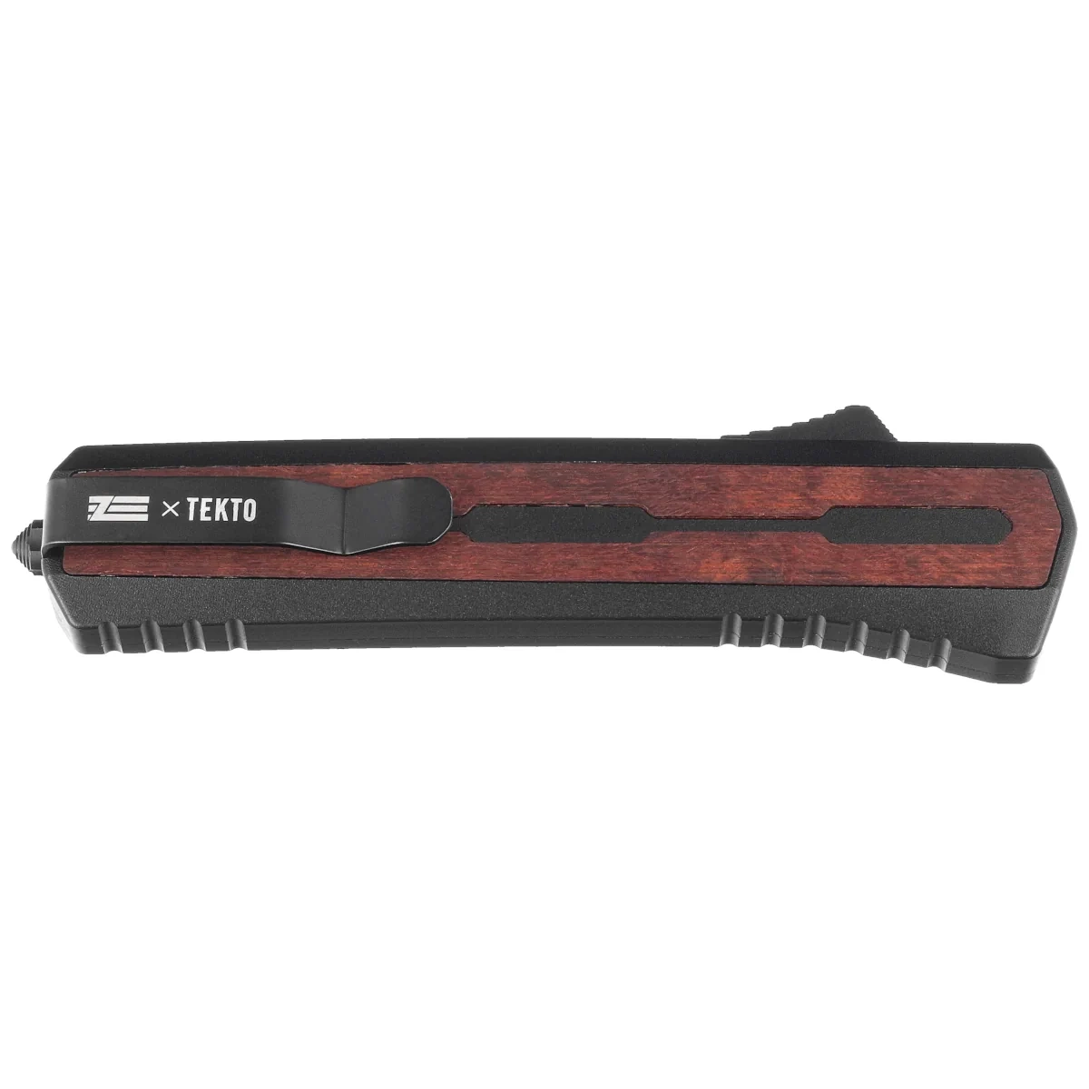 Tekto A7 Zastava D/E Black Aluminum/Red Wood OTF Knife, Black CPM S35VN