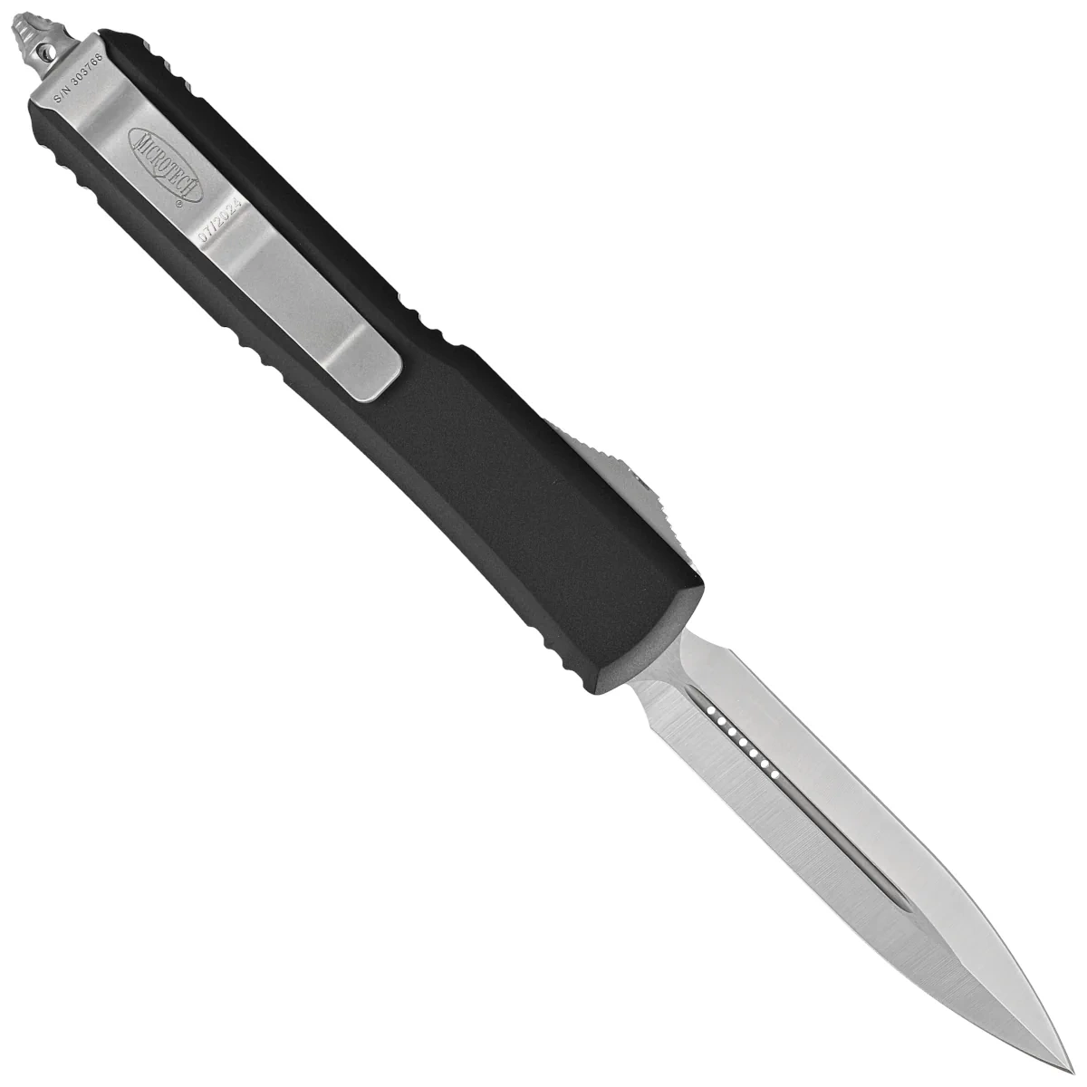 • Ultratech D/E Black Aluminum, Satin a full-sized OTF automatic knife from Ultratech series. Operating in D/A mode, it features a lightning-fast blade deployment mechanism. Handle is made of black anodized aluminum. Designed by Tony Marfione from Microtech