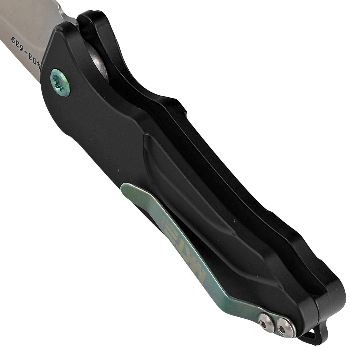 • Smooth Criminal Auto Black Aluminum, Green HW/Clip, Tumbled is MKT's first ever OTS automatic knife with an aluminum handle. Button lock button disassembles the blade in the blink of an eye. Made in the USA, built to survive the Apocalypse!