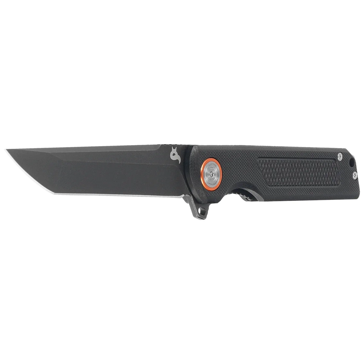 Momentum Black G10, PTFE Stonewashed, is the latest design from BlackFox's sub-brand. Featuring a Tanto blade made of D2 steel and textured G10 composite handle scales, the knife offers exceptional ease of use for everyday carry (EDC). Flipper for opening and the Liner-Lock mechanism for unlocking the blade ensure intuitive handling. This is a standout example of a compact EDC knife, making it an excellent choice for anyone seeking a reliable tool for daily tasks.
