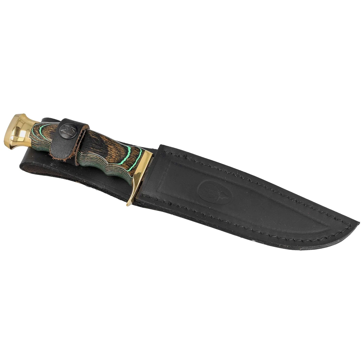 Handle - made of pakka wood (laminate) stained green. Profiled Handle eliminates sharp edges for comfortable grip. A decorative pin with the company's logo adds to the traditional look. Garda and hilt made of brass.