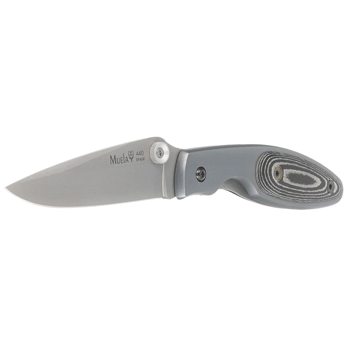 KMC-7M Gray Aluminum / Black Micarta, Satin EDC folding knife with a classic design. Made with Muela 's characteristic care. Handle made of aluminum and Micarta composite, Blade made of proven 440C stainless steel, all at a great price!