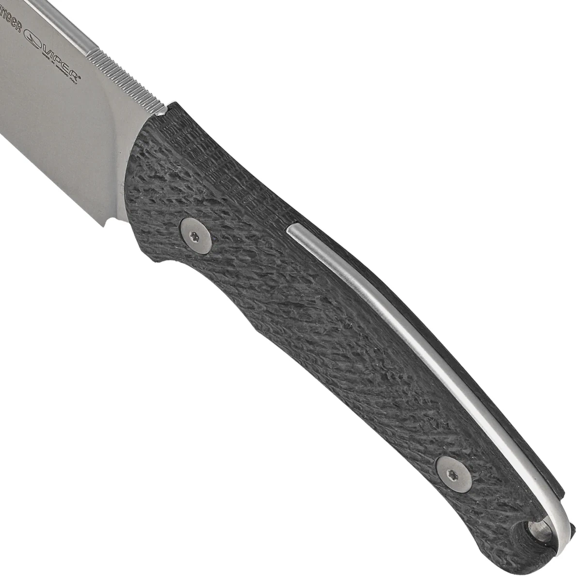 • Ranger Carbon Fiber, Satin design by Jens Ansø. A solid piece of proven N690 stainless steel, a multi-functional knife from Italian brand Viper. Comfortable Carbon Fiber composite handle, Sheath made of high-quality leather with belt attachment.