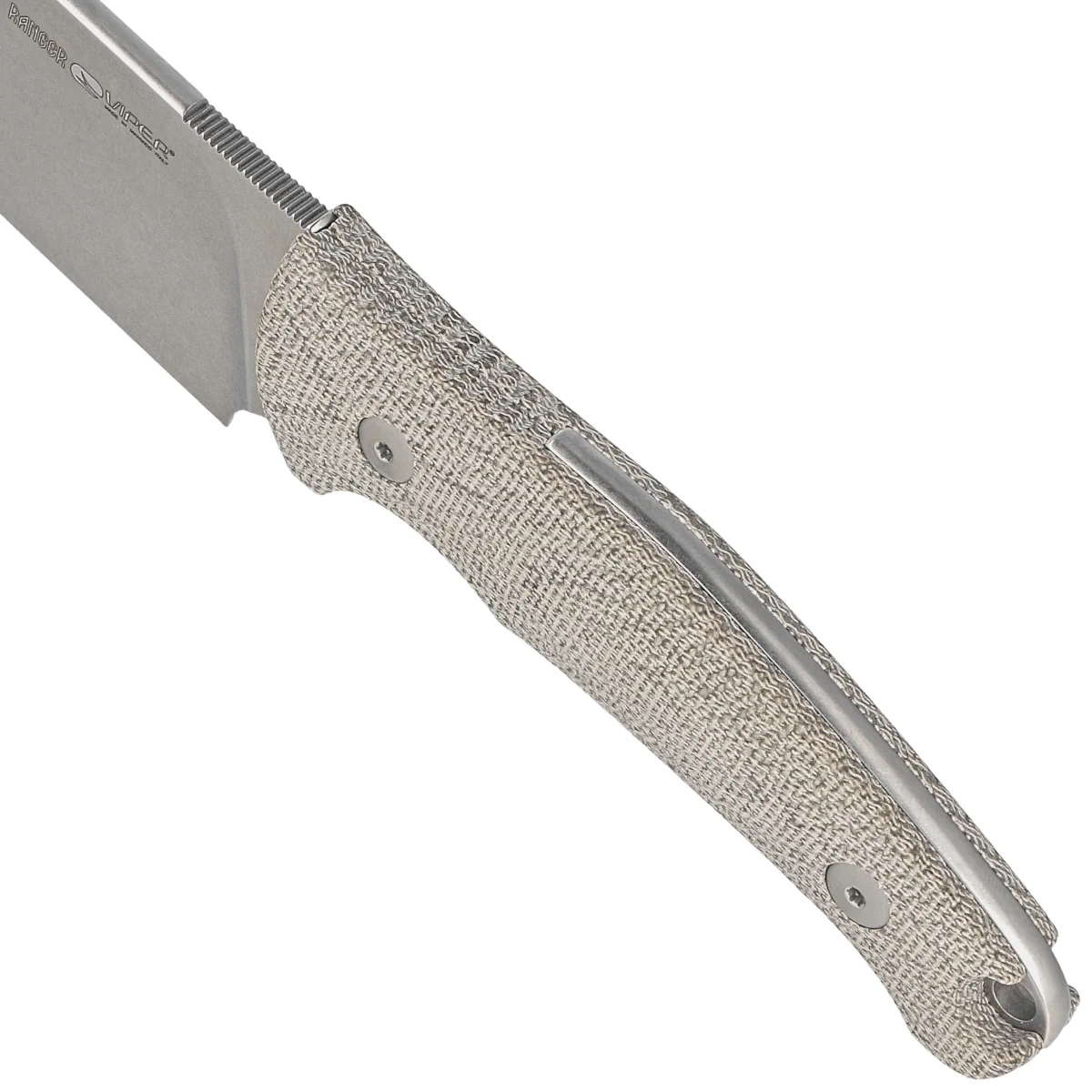 - Ranger Green Canvas Micarta, Stonewashed design by Jens Ansø. A solid piece of proven N690 stainless steel, a multi-functional knife from Italian brand Viper. Comfortable Micarta composite handle, Sheath made of high-quality leather with belt attachment.