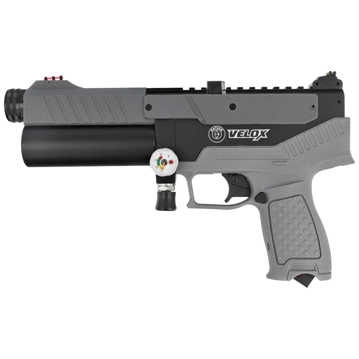 - Velox Grey .22 a semi‑automatic PCP pistol from Hatsan with a semi‑auto reloading system. Ideal for dynamic shooting. Two 50cc air tube, filled to 250 bar, ensure long-lasting shooting. Available in 4.5 mm, 5.5 mm, and 6.35 mm calibers.